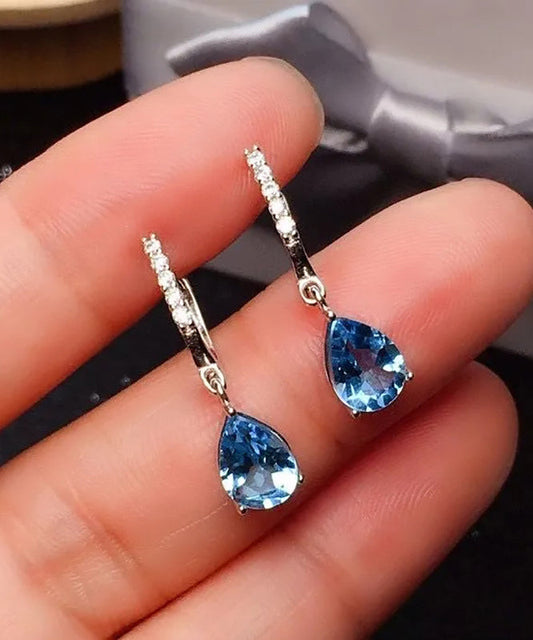 Elegante Cyan Sterling Silber Overgild Jade Ping Schnalle Tropfen Ohrringe AC1071