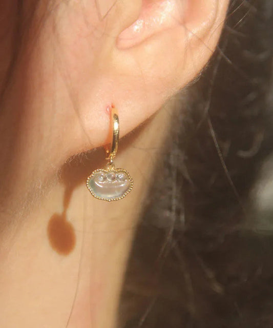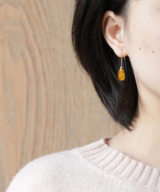 Retro Gelb Sterling Silber Zirkon Jade Kürbis Tropfen Ohrringe AC1049