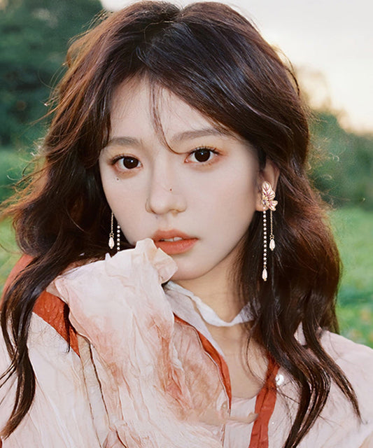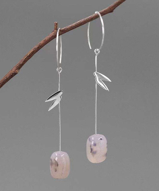 Chinesischen Stil Gold Sterling Silber Overgilt Wasser Tropfen Bambus Blatt Tropfen Ohrringe AC1066