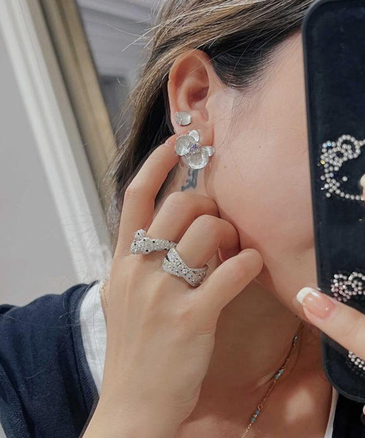 Feine lila Sterling Silber Intarsien Zirkon Jade Ohrstecker AC1050