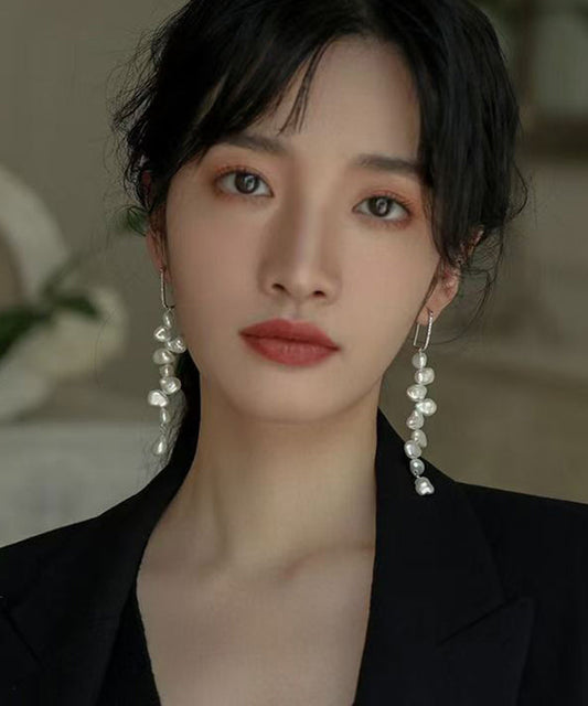 Original Design Seide Sterling Silber Gebrochen Silber Perle Quaste Drop Ohrringe AC1059
