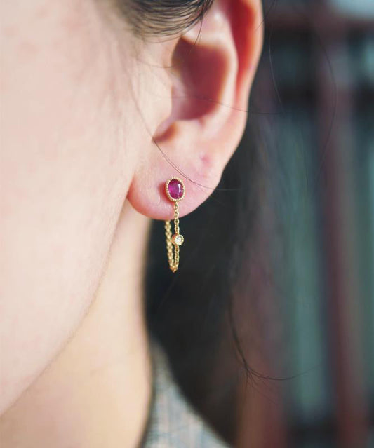 Art Red Sterling Silber Overgild Intarsien Edelstein Zirkon Tropfen Ohrringe AC1052