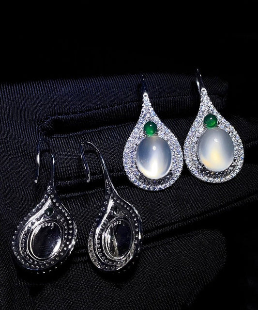 Chic Nude Sterling Silber Intarsien Zirkon Jade Kürbis Tropfen Ohrringe AC1064