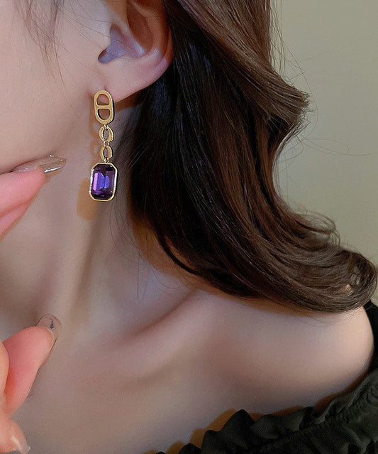 Kunst Schwarz Kupfer Zirkon Grafik Quadrat Tropfen Ohrringe QQ003