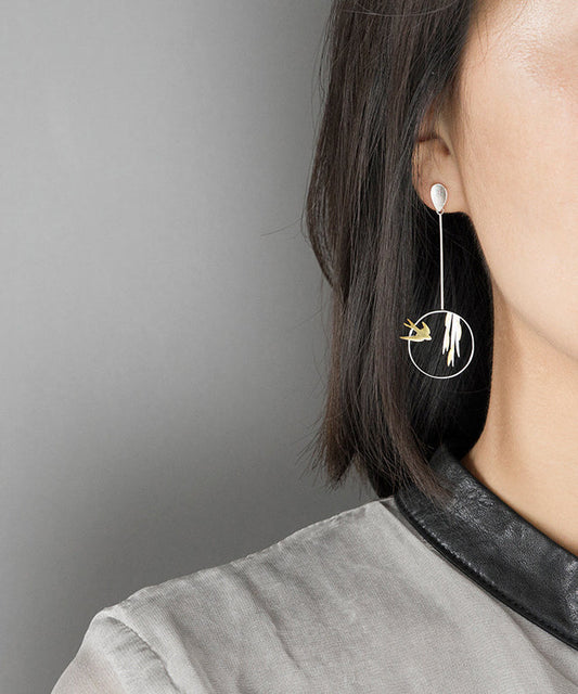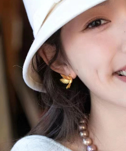 Moderne Ohrstecker mit gelbem Sterlingsilber, vergoldet, kleiner Vogel, QQ011