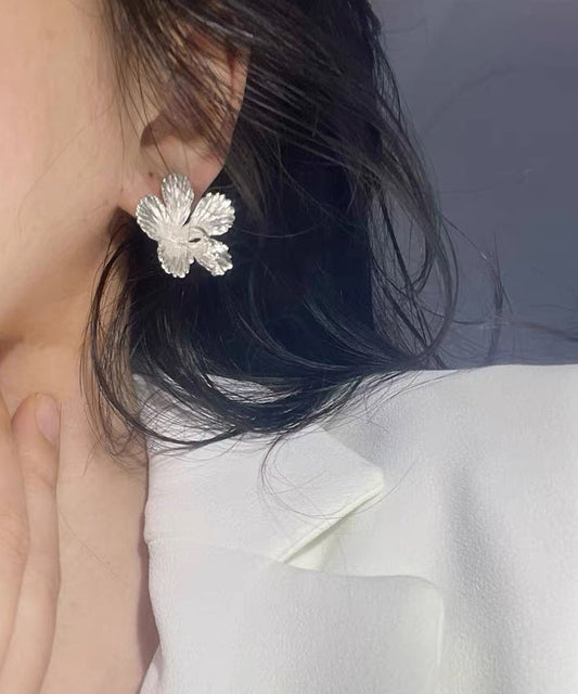 Vintage Weiße Sterling Silber Burn White Jasmine Flower Ohrstecker QQ070