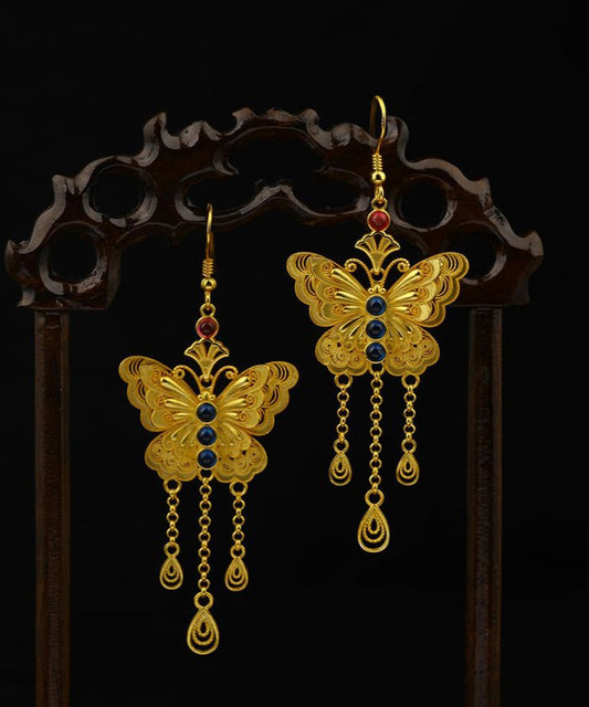 Retro Orange Sterling Silber Overgild Schmetterling Quaste Tropfen Ohrringe QQ010