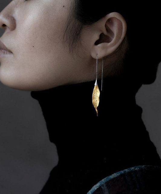 Schlichte vergoldete Blatt-Ohrhänger aus Sterlingsilber QQ071