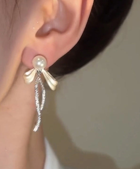 Schicke Ohrstecker aus Sterlingsilber mit Perlen und Schleife, weiß, QQ014