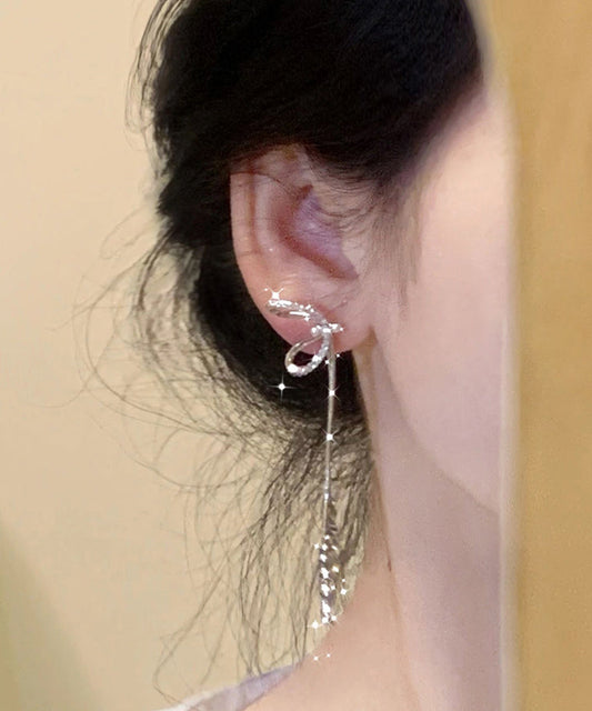 Stilvolle Sterling Silber Schleife Quaste Tropfen Ohrringe QQ013