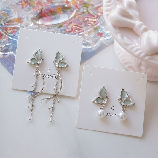 Drop Pearl Rhinestone Earring Butterfly Faux
