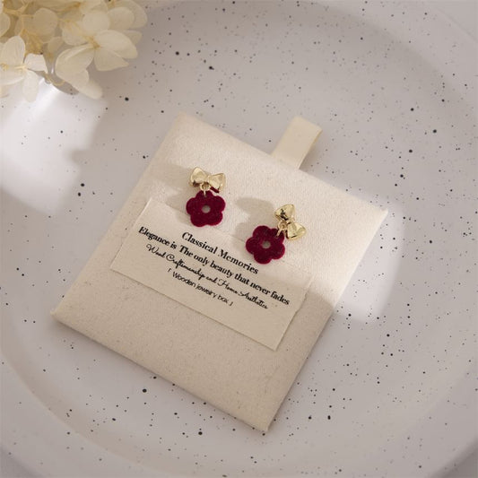 Clip-On Pearl Drop Bow Pom Faux Earring /