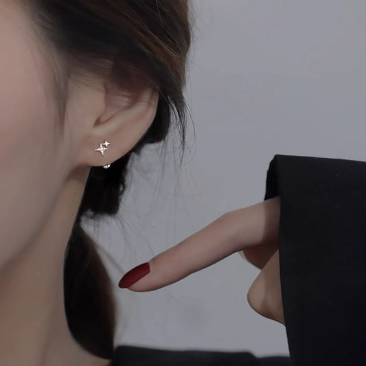 Moon Earring Asymmetrical Silver Star S999 Stud Rhinestone