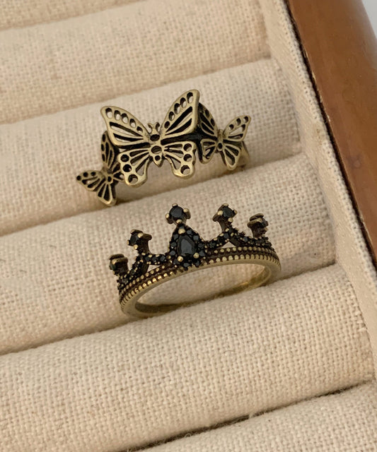 Out Ancient Rings Butterfly Hollow Gold Two Crown Metal Fine