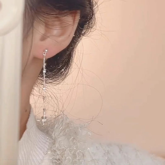 Drop Floral Zircon Tassel Chiffon Sterling White Silver Handmade