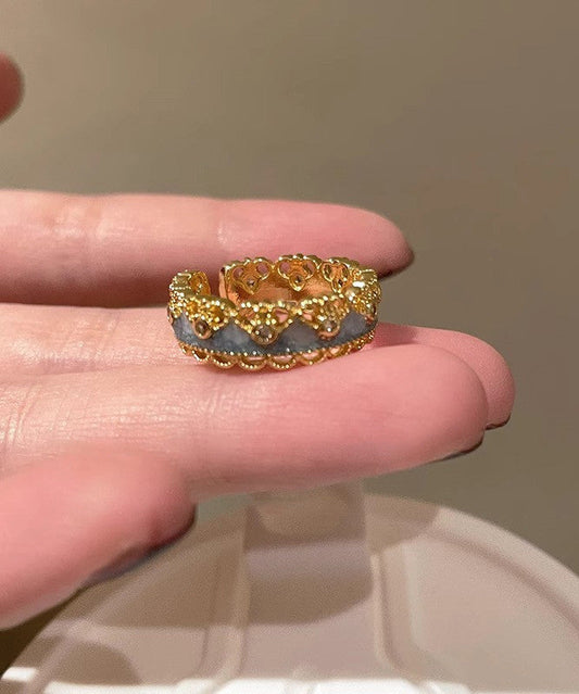 Rings Gourds Open Sterling Silver Retro Gold Overgild Lace