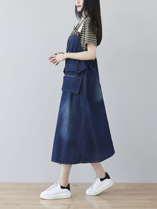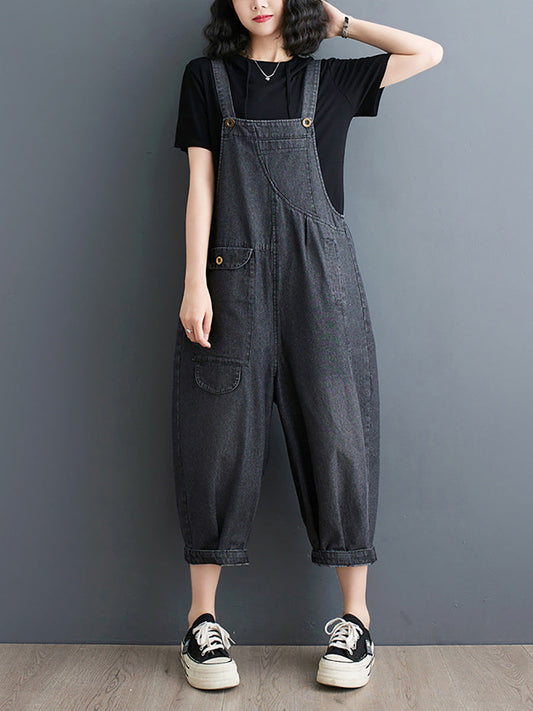Damen Retro Sommer Einfarbig Tasche Denim Overalls FG1035