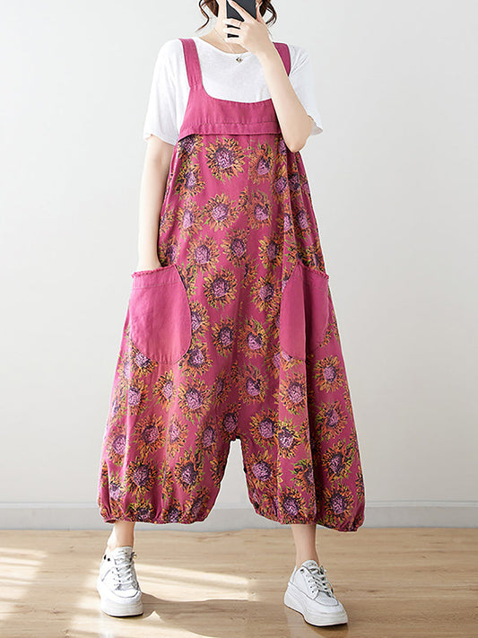 Damen Sommer Artsy Floral Spliced Loose Jumpsuits AS1051