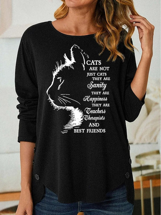 Women's T Shirt Fashion Cat Letter Print Long Sleeve