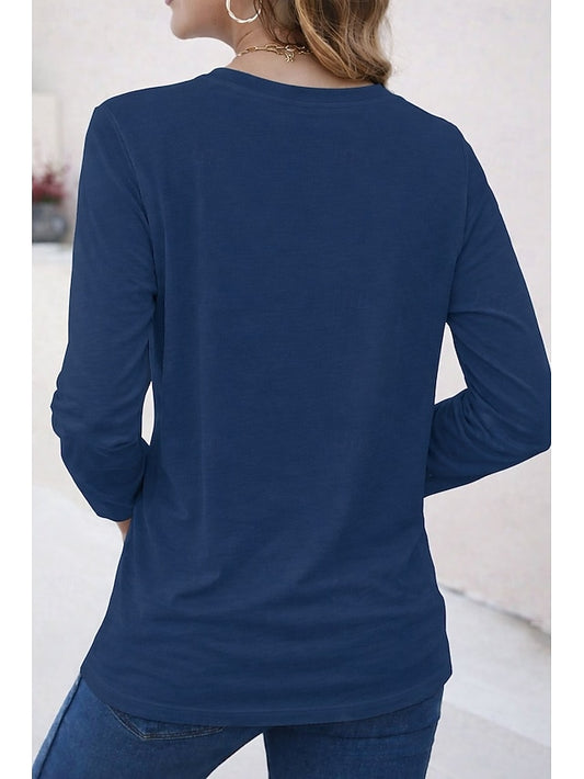Women's T Shirt V Neck Long Sleeve Tunic Leopard Color