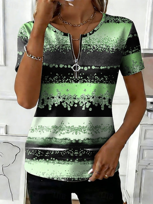 Women's T Shirt Zipper Graphic Geometric Vintage Hawaiian