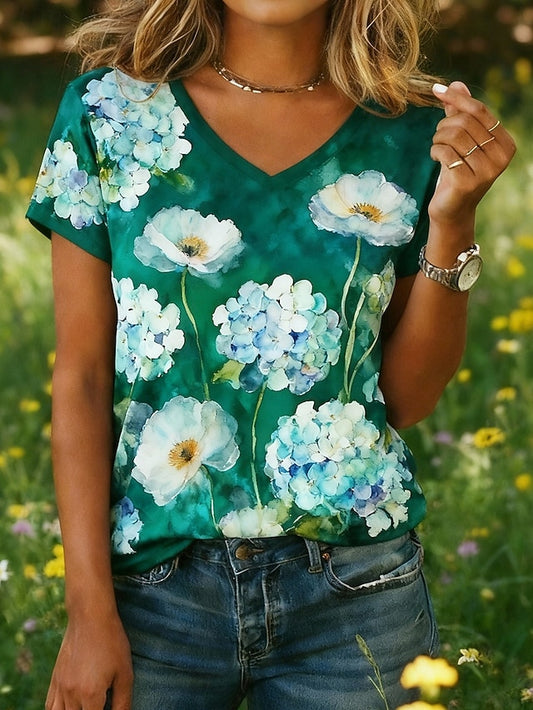 Women's T Shirt Henley Blouse Fashion Floral Buttons Print