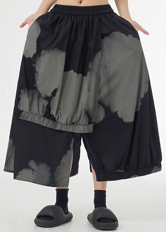 Schwarzer Batik-Taschen-Patchwork-Baumwollrock mit elastischer Taille, asymmetrischer Sommerrock LY9541