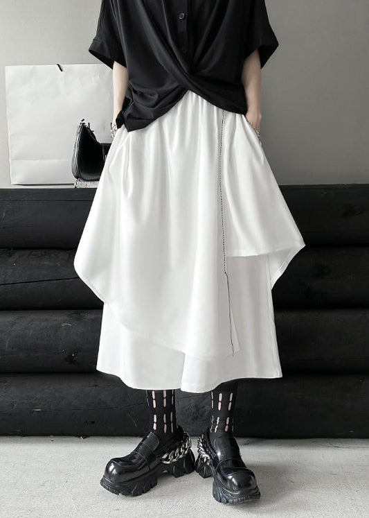 Schicker weißer asymmetrischer Hosenrock aus Baumwolle mit elastischer Taille und Patchwork-Muster für den Herbst LY9545