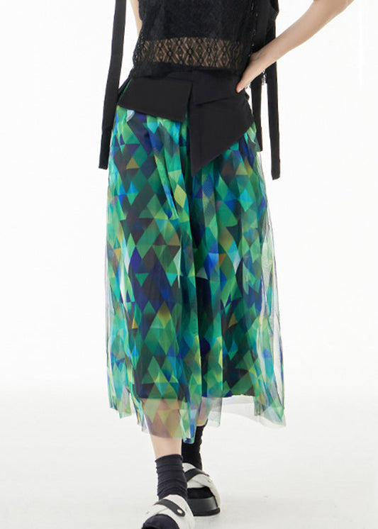 Taillierter grüner asymmetrischer Print Patchwork Tüllrock Sommer LY9538