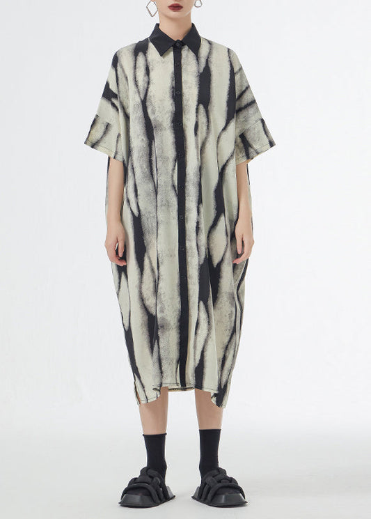 Lockeres schwarzes Patchwork-Baumwollhemdkleid mit Streifenmuster für den Sommer LY9547
