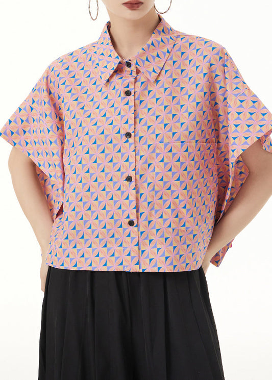 Lockeres rosa Baumwollhemd mit Peter-Pan-Kragen-Print im Patchwork-Stil für den Sommer LY9539
