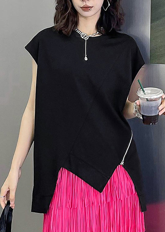 Modernes schwarzes O-Ausschnitt Asymmetrisches Patchwork Baumwoll T-Shirt Sommer LY9553