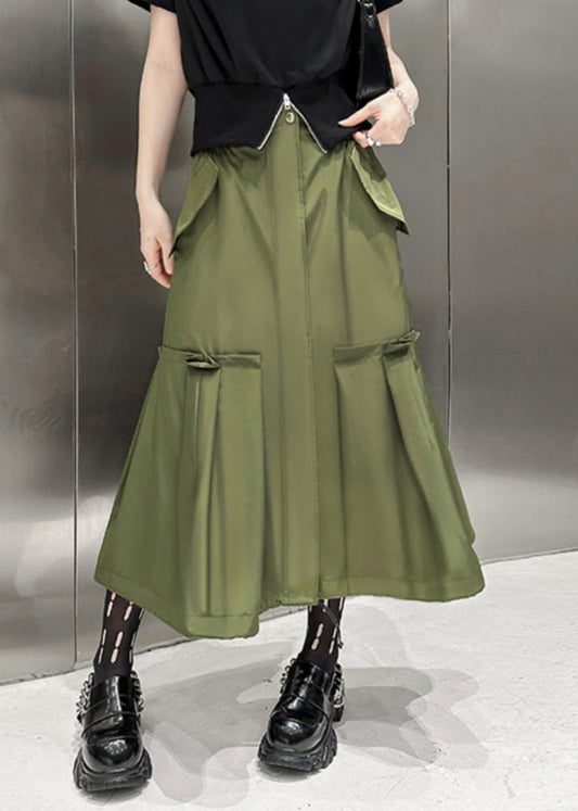 Neue Armee-Grün Taschen Hohe Taille Patchwork Baumwolle A Linie Röcke Herbst LY9549