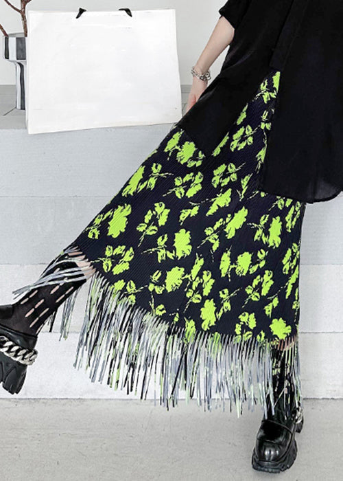Stilvolle grün bedruckte Patchwork-Maxiröcke aus Baumwolle mit Quasten für den Sommer LY9548