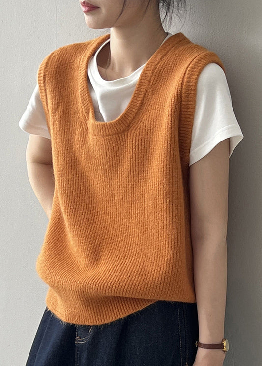 2024 Einfache, vielseitige grüne Strickweste mit U-Ausschnitt, Herbst WD016