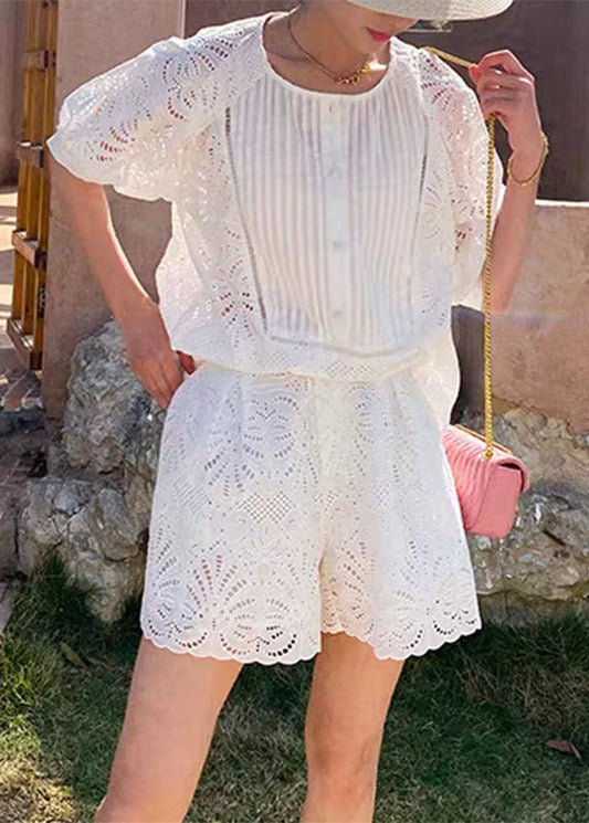 Weißes, kurzes, ärmeliges französisches O-Ausschnitt-Shirt und zweiteiliges Set