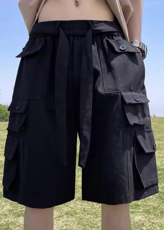 Neu Schwarz Elastische Sommer Taschen Shorts Herren Taille