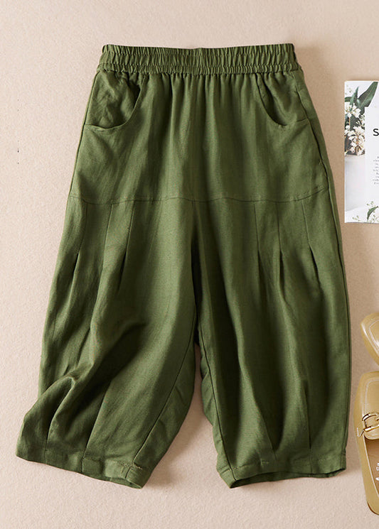 Lässige Armeegrüne Taschen Hohe Taille Baumwollshorts Sommer AM1060
