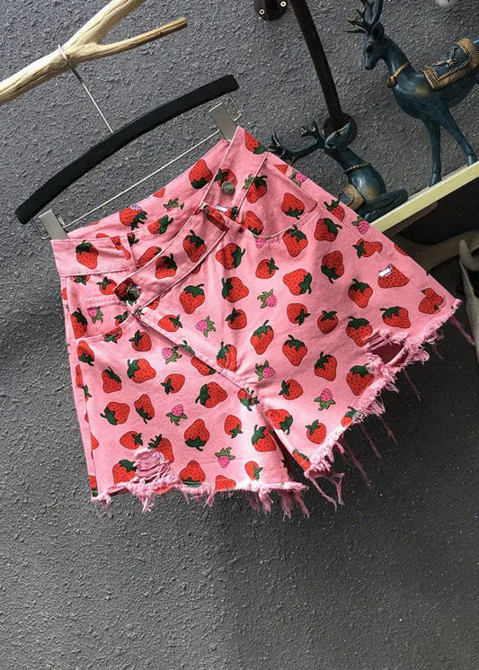 Süße rosa Jeans-Shorts mit Erdbeer-Print und Taschen für den Sommer ML0760