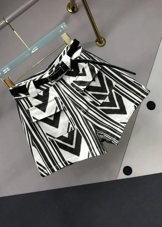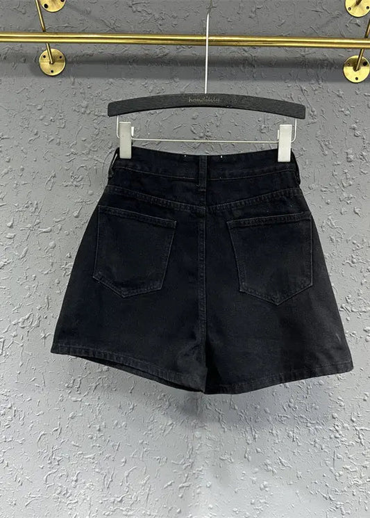Frauen Schwarze Taschen Zirkon Patchwork Baumwolle Shorts Herbst LY8592