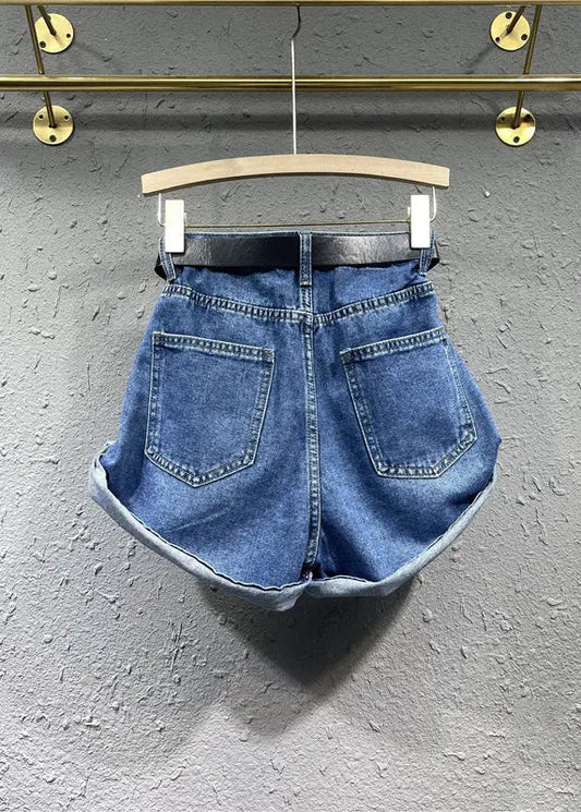 Style Blaue Patchwork-Jeansshorts mit Taschen Herbst ML0743