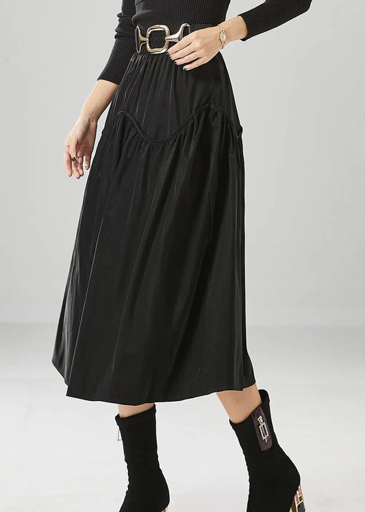 Schwarze Patchwork-Chiffonröcke mit extra großem Saum, faltig, Herbst ML1229