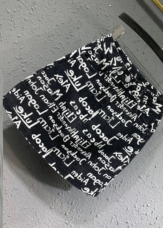 Edler schwarzer Wickelrock aus Denim mit grafischem Print und hoher Taille ML0770