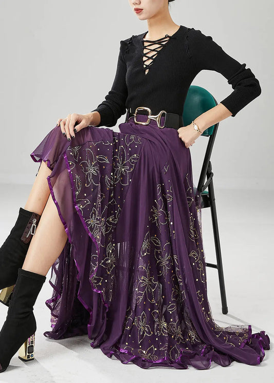 Edle, stumpfviolette, übergroße Patchwork-Chiffonröcke für den Herbst ML1227