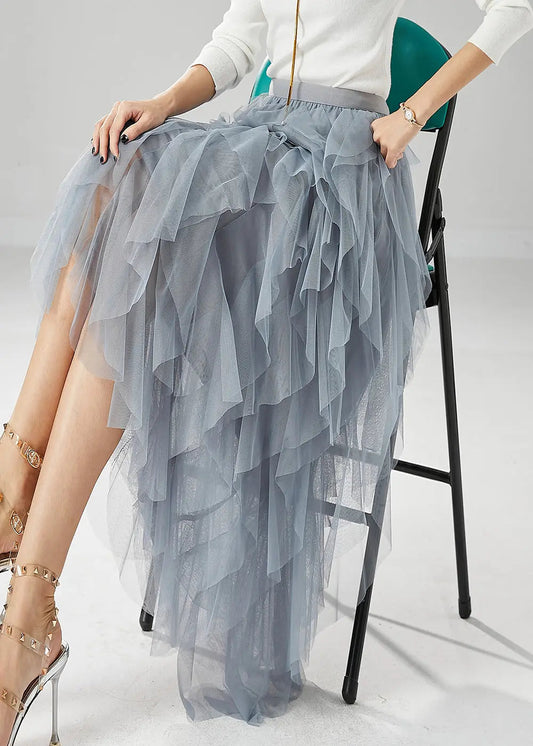 Himmelblauer Tüll-Strandrock mit elastischer Taille, Sommer-ML1216