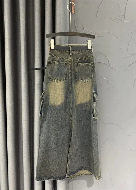 Vintage Grau Patchwork Schärpen Taschen Gerade Röcke Herbst ML0761