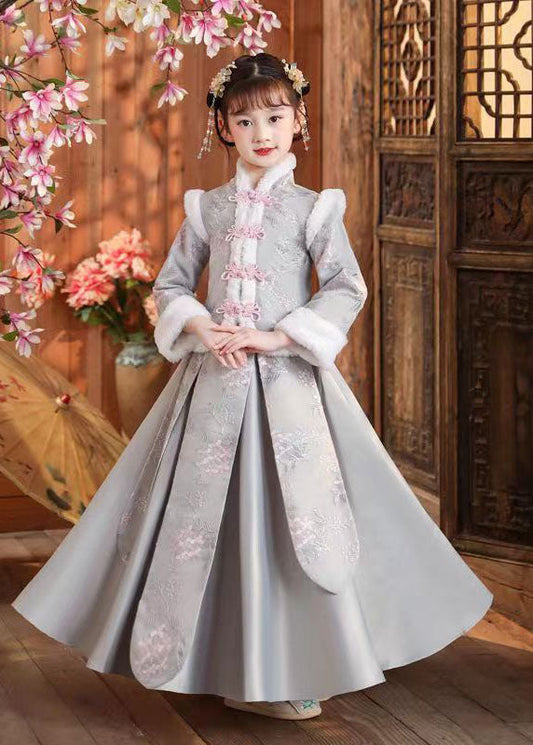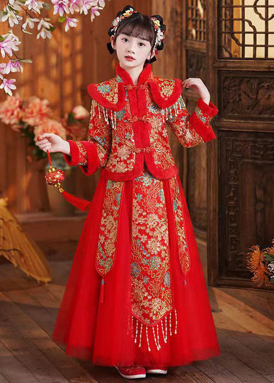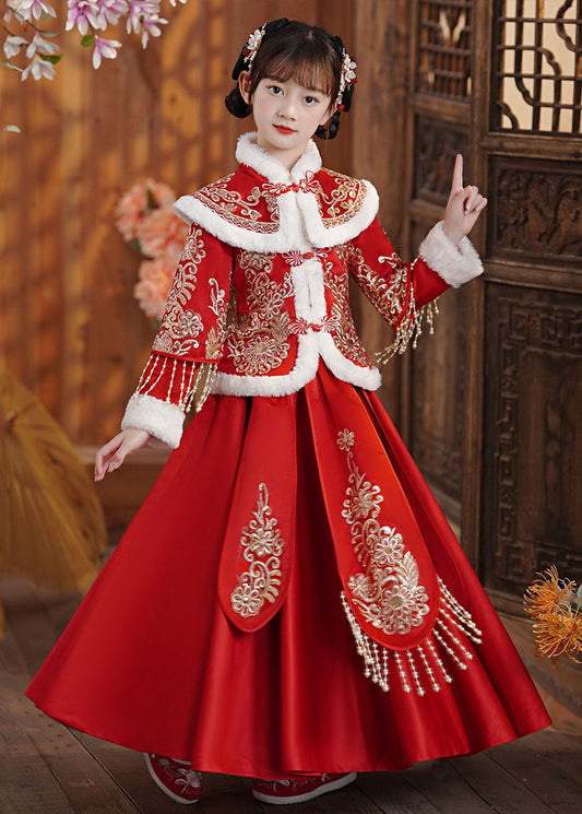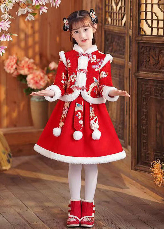 Art Red Bestickte warme Fleece-Kindermäntel und Maxiröcke Zweiteiliges Set Langarm ML0162