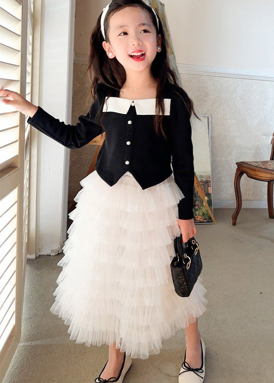 Süße schwarze Baumwolloberteile und Tüllröcke für Babys, zweiteiliges Set für Herbst LY9999