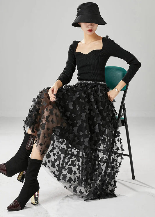 Handgemachte schwarze Tüllröcke mit Schmetterlingsapplikationen, Herbst ML0482