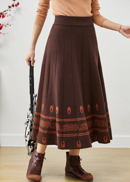Moderne Schokoladenröcke aus Wolle mit extra großem Saum und Print, Herbst LY9848